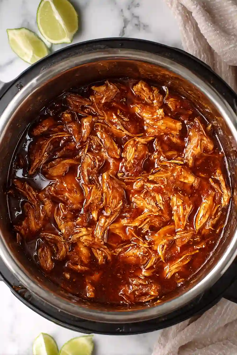 - Once the sauce has thickened, shred the reserved chicken into bite-sized pieces using two forks or your hands. Stir the shredded chicken back into the sauce in the Instant Pot, making sure every piece is coated. Let it warm through for a minute or two, then taste and adjust seasoning if needed.