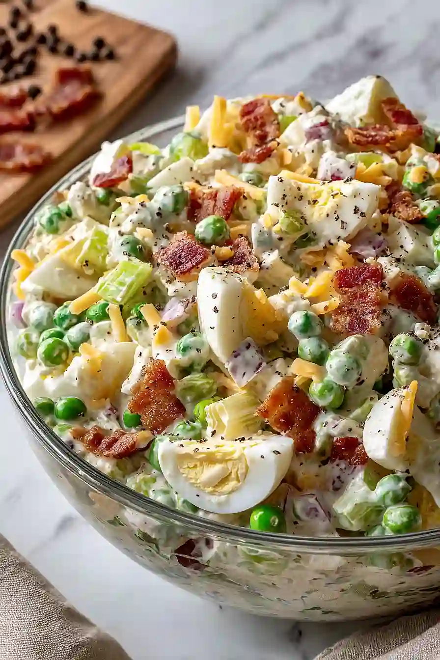 For this Southern pea salad, you’ve got a few options that’ll all turn out great. Frozen peas are probably the easiest route – just thaw them out and you’re ready to go. Canned peas work too, though you’ll want to drain and rinse them well to get rid of any excess salt or that tinny taste. Fresh peas are wonderful if you can find them at the farmer’s market, but they’ll need a quick blanch in boiling water for about 2-3 minutes before cooling them down. Whichever type you choose, make sure your peas are completely cooled before mixing them into the salad, otherwise they’ll make your mayonnaise mixture runny and nobody wants that.
