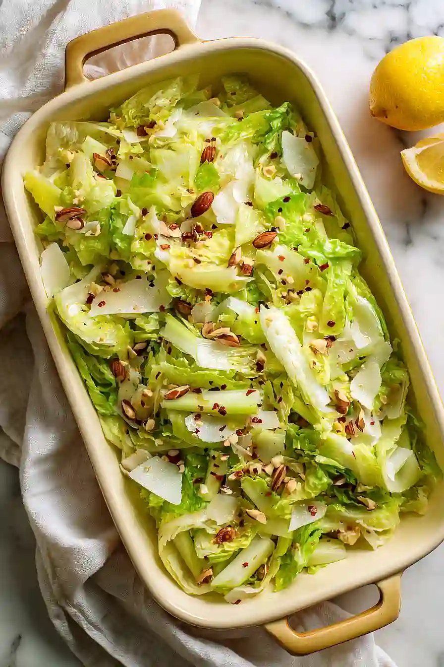 This bright, crunchy salad is perfect alongside grilled chicken or fish since the lemon and celery help cut through richer proteins. I love serving it with roasted salmon or pan-seared chicken thighs for an easy weeknight dinner. It also works great as a side for pasta dishes – think cacio e pepe or carbonara – where the fresh, crisp salad balances out the creamy, heavy pasta. You could also pile it on top of crusty bread with some extra Parmesan for a quick lunch, or serve it next to a hearty grain bowl with quinoa or farro.